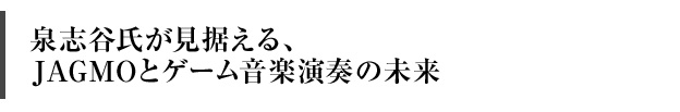 泉志谷 そうですね。ゲーム音楽を広げていく、ゲームの文化を浸透させていく、ということと、そういう本気の演奏家の人々を知ってほしいなと思います。僕も、彼らの演奏に感動した1人ですから。そういう人たちの魅力をどうか伝えたいという気持ちはすごくあります。